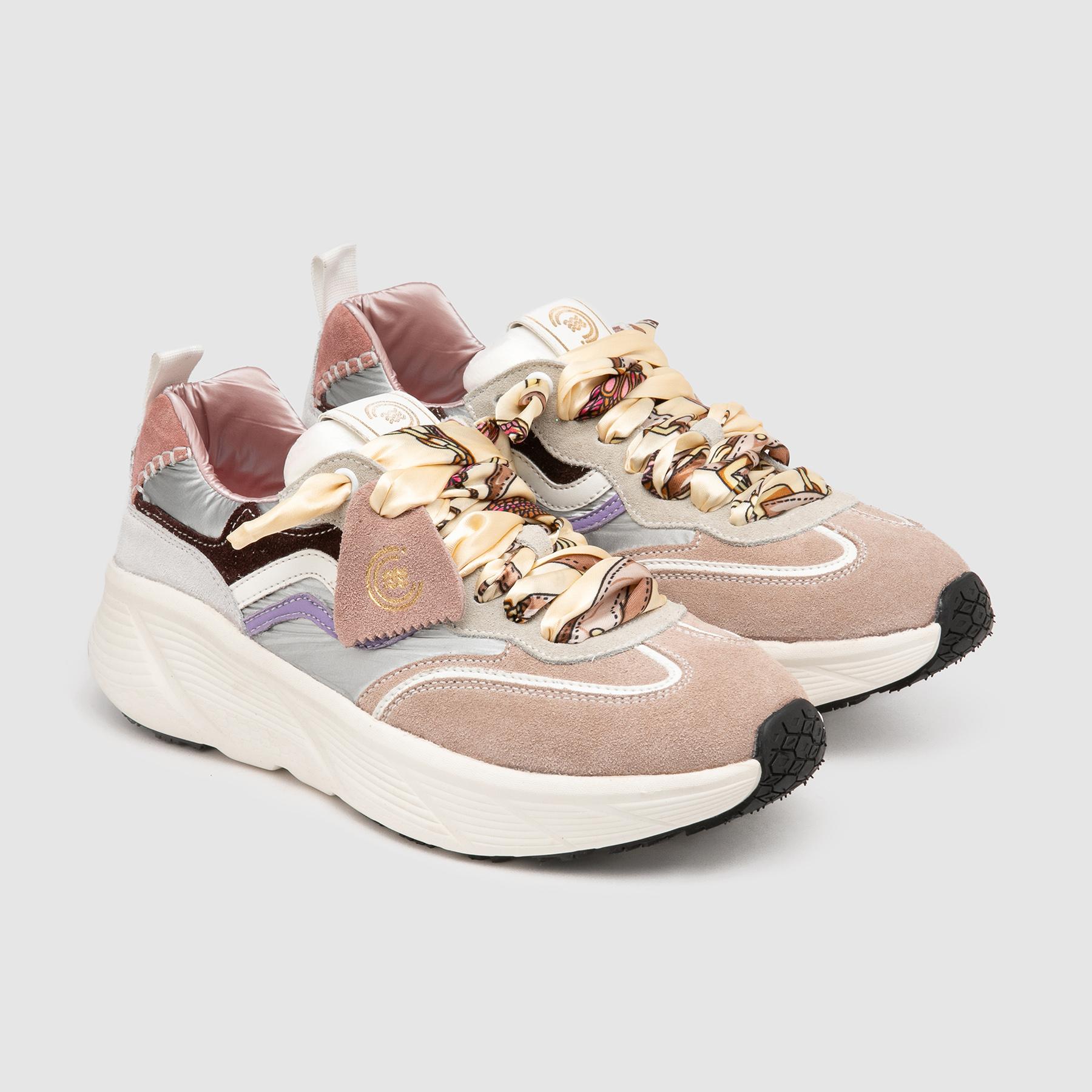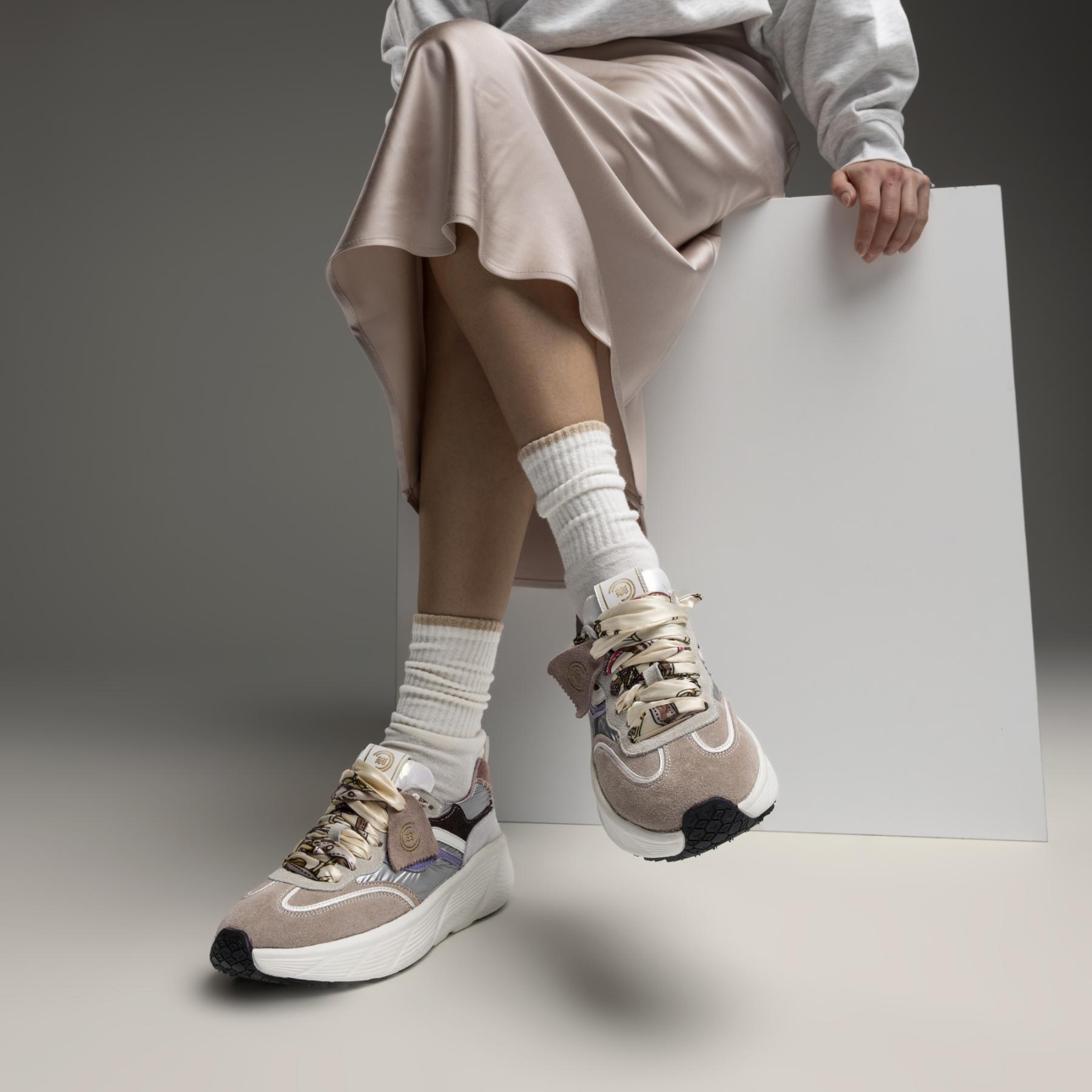 I lacci fantasia effetto foulard donano un tocco originale e distintivo, trasformando una classica running in un accessorio fashion dal carattere unico. La suola chunky ammortizzata garantisce stabilità, supporto e comfort prolungato durante la camminata, mentre la struttura ergonomica assicura libertà di movimento e sostegno.