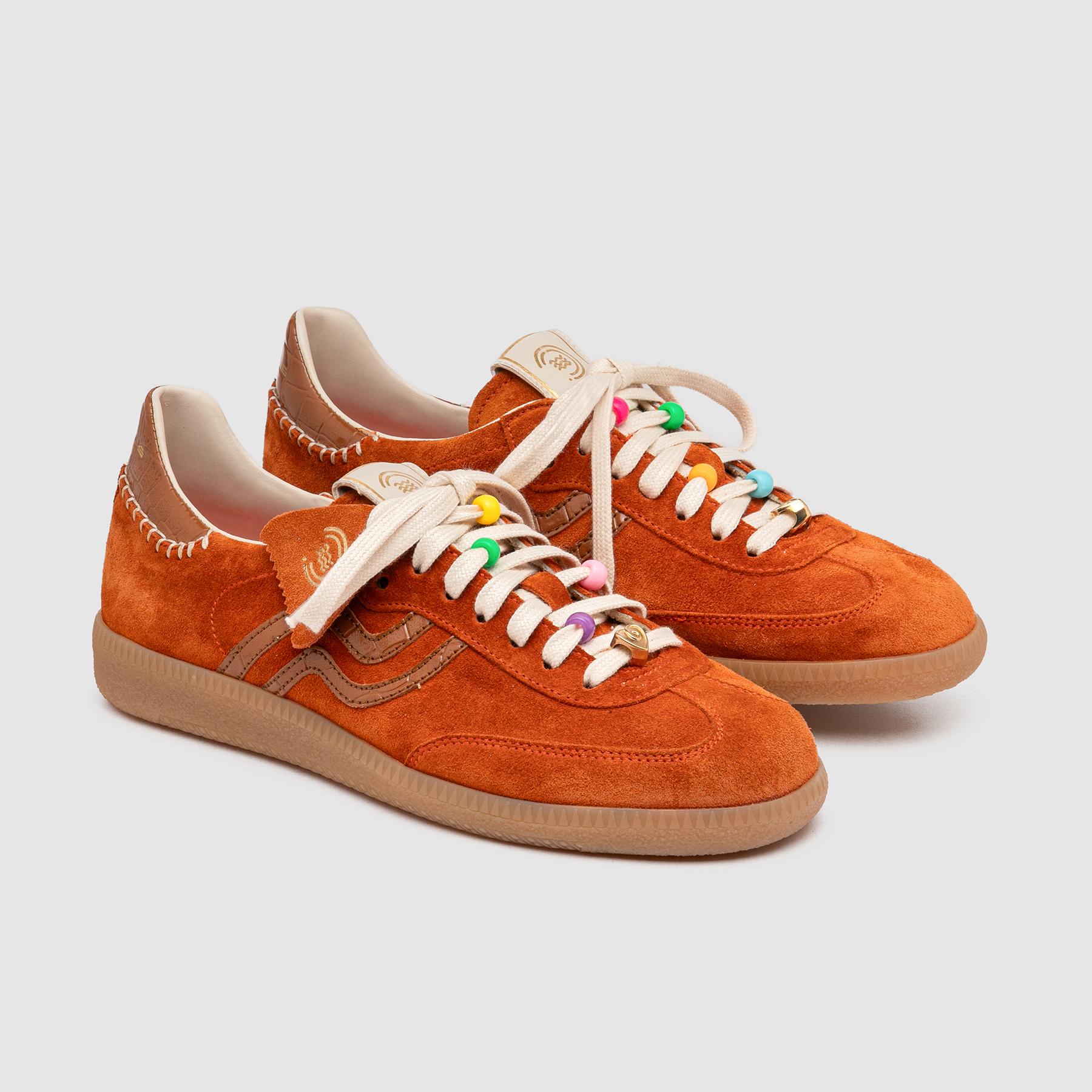 Scopri le scarpe Primabase modello Polo, realizzate in camoscio con inserti in pelle. Queste sneakers si distinguono per il loro design metropolitano e frizzante con lacci color panna impreziositi da perline multicolore. La suola in gomma color miele ed il fussbett memory color rosa garantiscono comfort e stile per un look ricercato e distintivo.