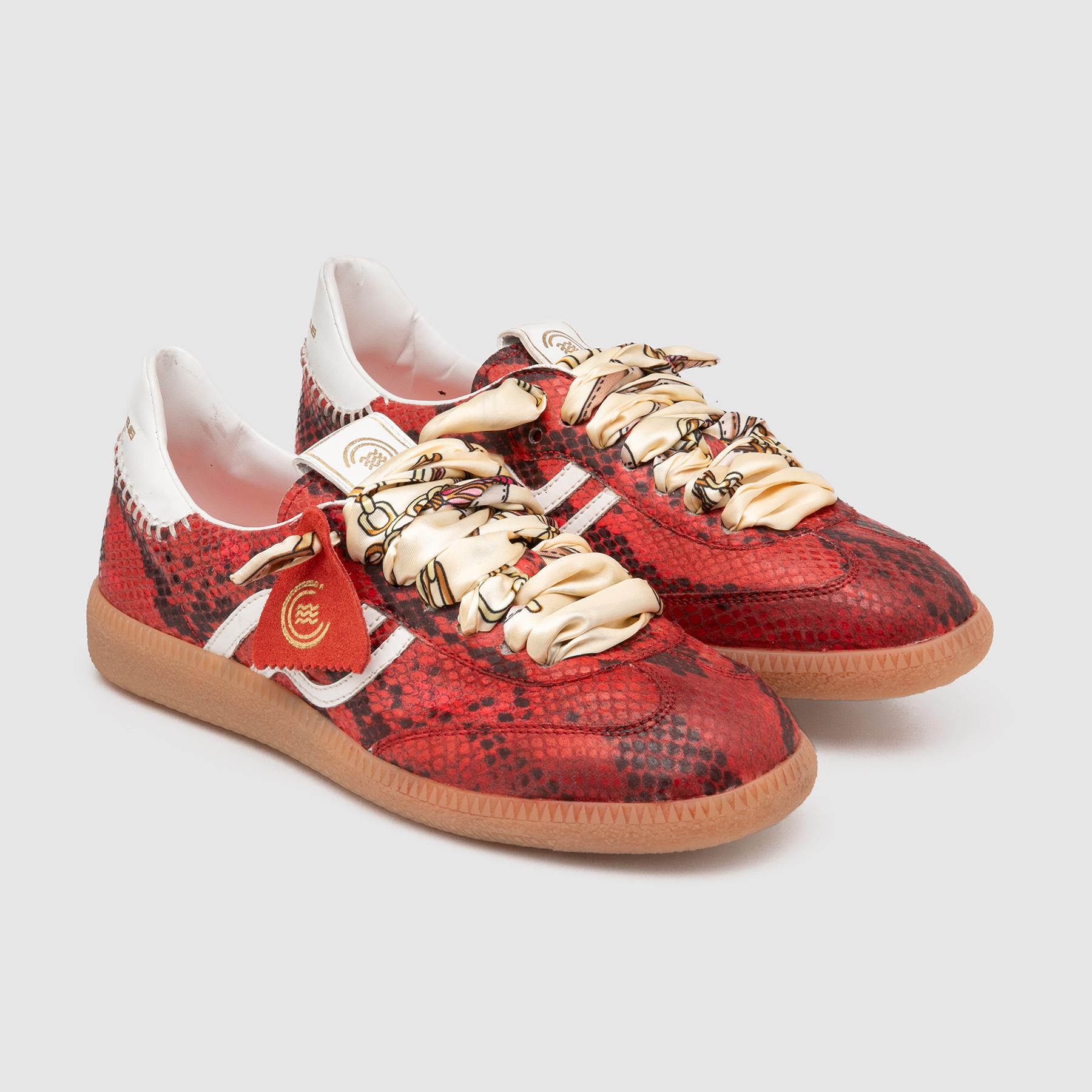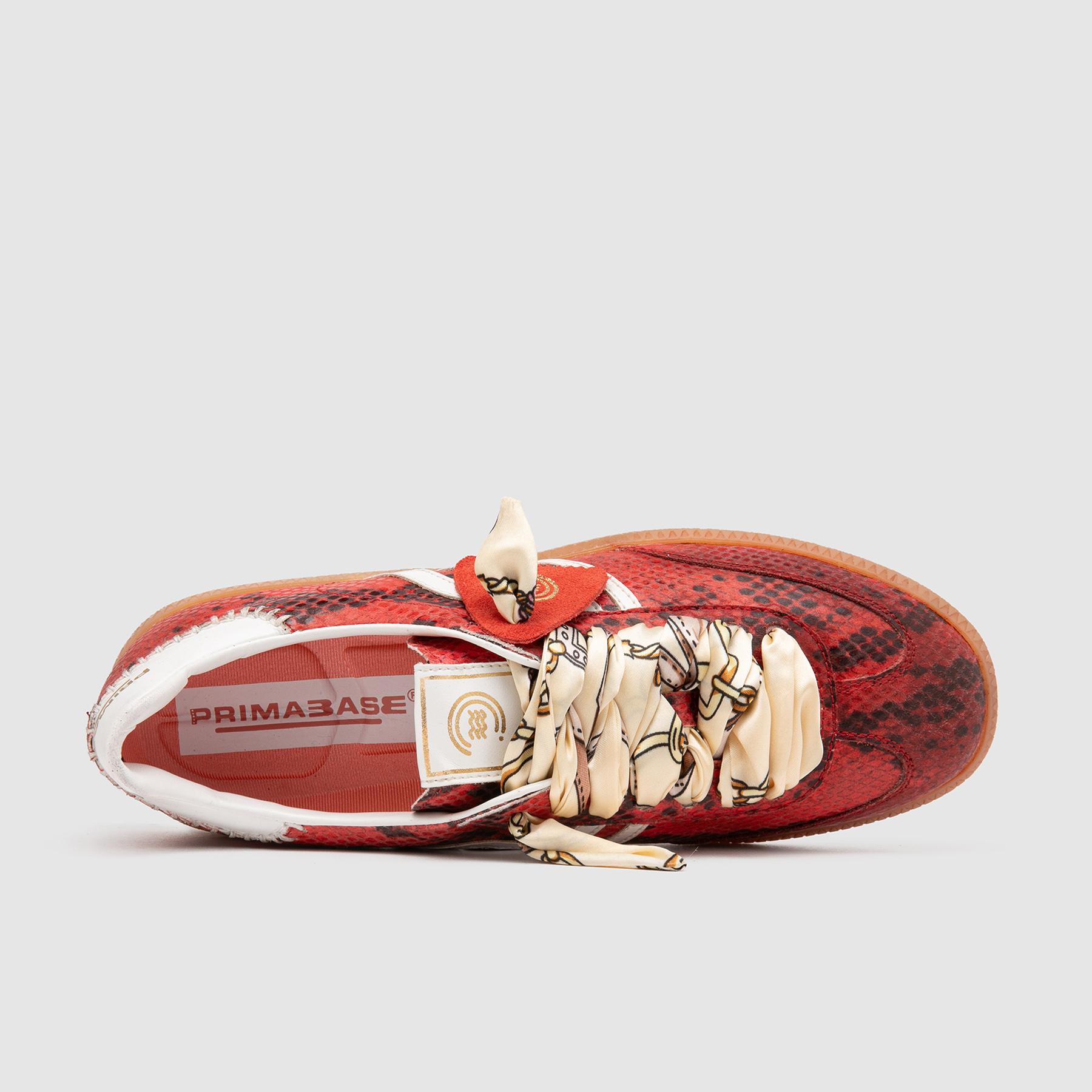 Aggiungi un tocco di eleganza casual al tuo look con le sneakers da donna Primabase modello Polo. Realizzate in pelle con stampa pitone, queste scarpe uniscono stile romantico a design sportivo retrò. Il profilo laterale a onda, il fussbett in memory rosa e la suola in gomma color miele garantiscono comfort e stile per tutta la giornata. I lacci in tessuto a fantasia completano il look vintage, rendendo queste sneakers perfette per un outfit urbano e sofisticato.