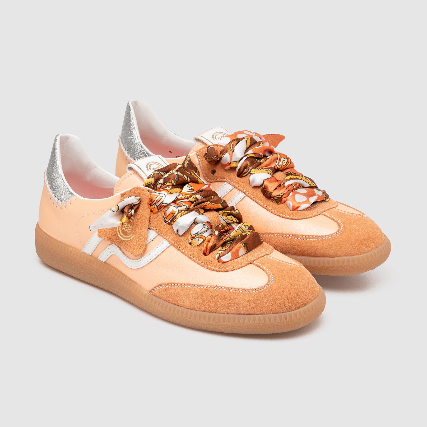 Aggiungi un tocco di eleganza casual al tuo look con le sneakers da donna Primabase modello Polo. Realizzate in pelle e suede, queste scarpe uniscono stile romantico a design sportivo retrò. Il profilo laterale a onda, il fussbett in memory rosa e la suola in gomma color miele garantiscono comfort e stile per tutta la giornata. I lacci in tessuto a fantasia completano il look, rendendo queste sneakers perfette per un outfit urbano e sofisticato.