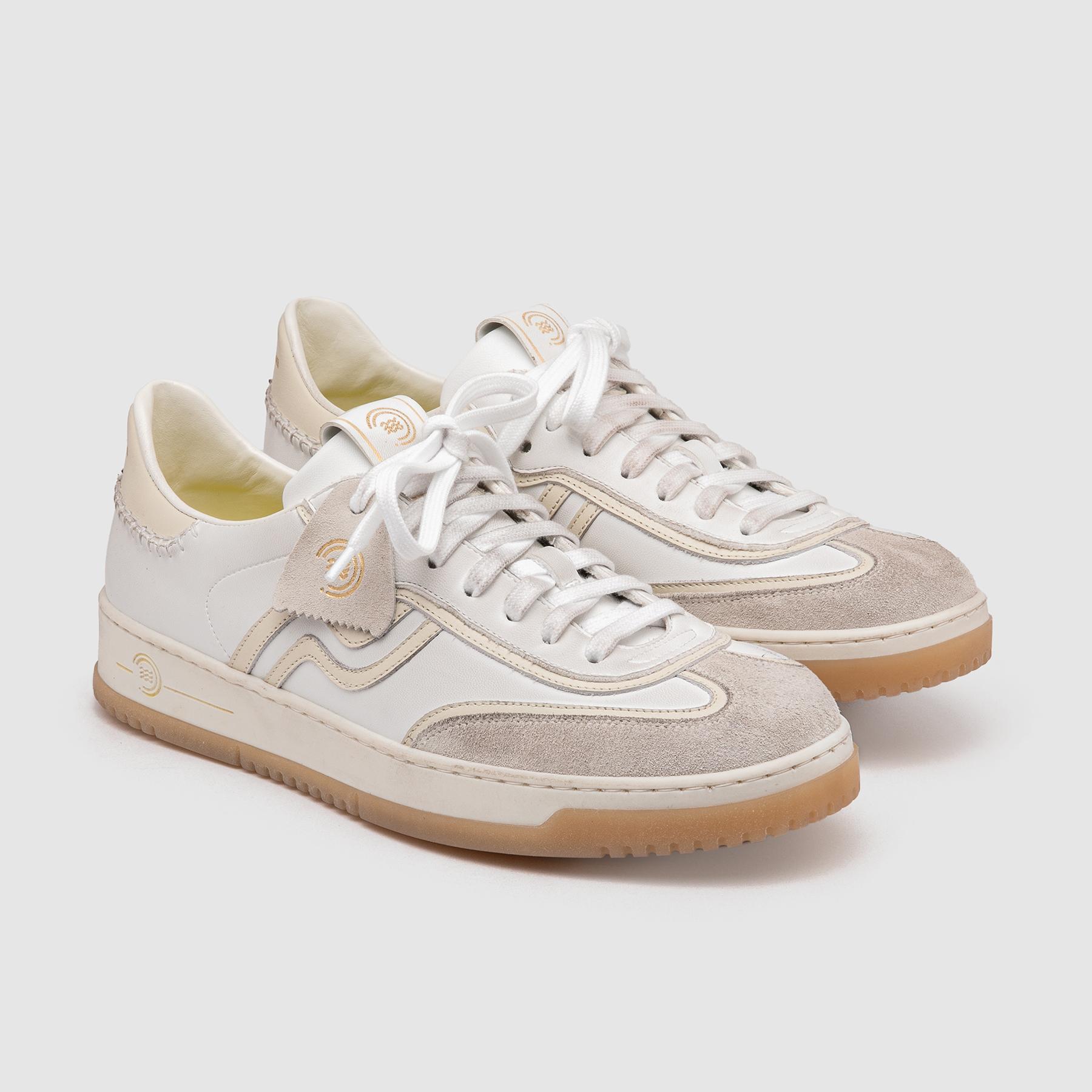 Eleganti e versatili, queste sneakers bianche da uomo combinano sapientemente pelle e suede beige per un look pulito e sofisticato. I dettagli tono su tono e il design ispirato alle scarpe vintage conferiscono uno stile senza tempo, perfetto per ogni occasione. La fodera interna in pelle, il fussbett giallo in memory e la suola bicolore garantiscono comfort e durata, ideali per l’uso quotidiano.